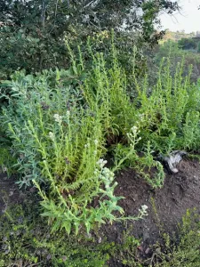 - If they recently were running around outside through areas of native vegetation, they likely came in contact with California Cudweed ((Pseudognaphalium californicum). The plant gives off a pleasant odor reminiscent of maple syrup.